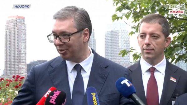 ПРЕДСЕДНИК Србије, Александар Вучић обраћа се после Генералне скупштине УН на којој је усвојена резолуција о Сребреници.
