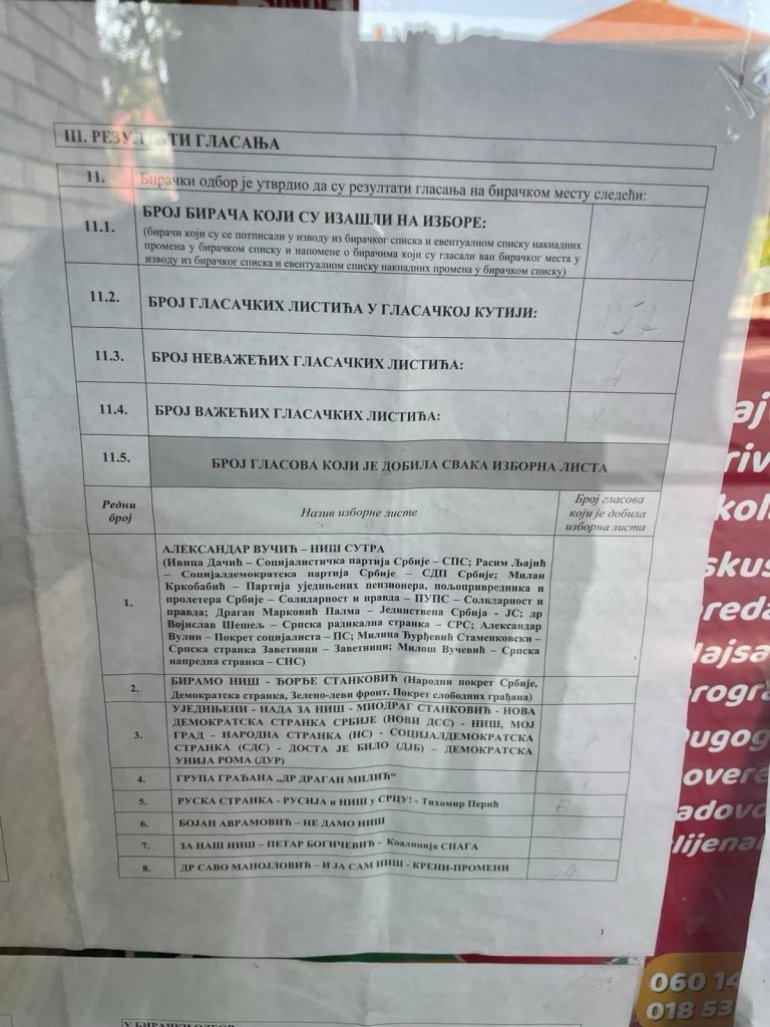 ГО СНС НИШ ПОРУЧИО ОПОЗИЦИЈИ: Зарад истине, ово су записници објављени на бирачком месту (ФОТО)
