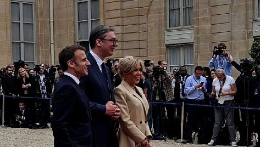 ПРЕДСЕДНИК Републике Србије Александар Вучић огласио се на друштвеној мрежи Инстаграм по доласку у Јелисејску палату , где су га дочекали председник Републике Француске Емануел Макрон са супругом Брижит Макрон.