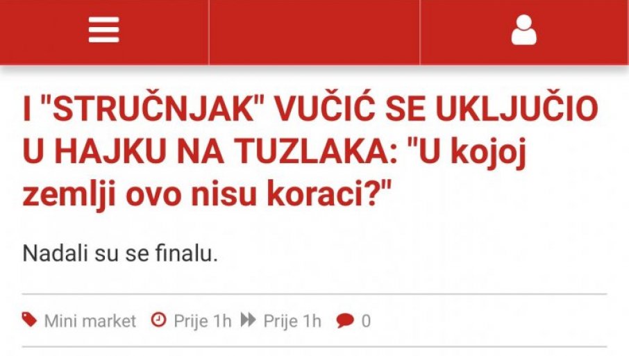 То је био повод да "Слободна Босна" настави болесну кампању мржње против Александра Вучића објавивши текст под насловом - И "СТРУЧЊАК" ВУЧИЋ СЕ УКЉУЧИО У ХАЈКУ НА ТУЗЛАКА: "У којој земљи ово нису кораци?"