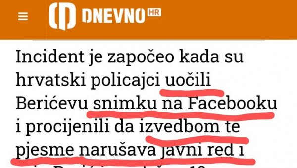БЕОГРАДСКИ адвокат Немања Берић ухапшен је и осуђен на 15 дана затвора у Хрватској због "нарушавања реда и мира" само зато што је певао песму у свом аутомобилу.