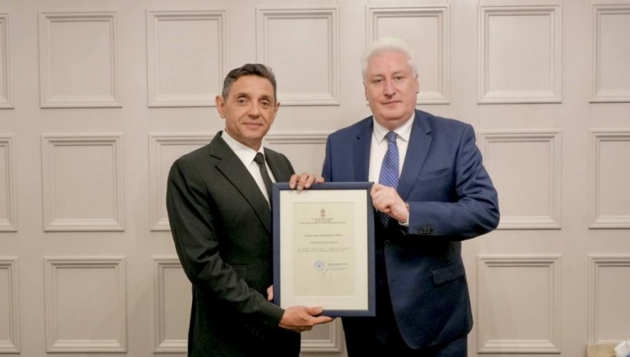 Александар Вулин уручио је Игору Коротченку Захвалницу Владе Србије за велики лични допринос јачању и развоју међудржавних односа Србије и Русије.