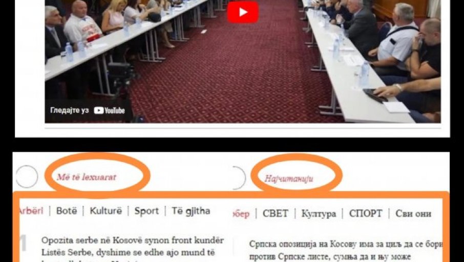 СРПСКА опозиција је веома популарна код Албанаца, а доказ за то је да је најчитанија вест на приштинском порталу "Коха", који се налази под контролом терористе Аљбина Куртија, вест од 29. септембра под насловом "Српска опозиција на Косову има за циљ да се бори против Српске листе, сумња да њу може контролисати Вучић".