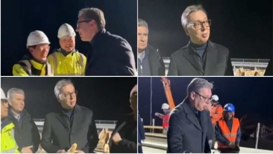 ВУЧИЋ ОБРАДОВАО РАДНИКЕ НА АУТО-ПУТУ КА ПОЖАРЕВЦУ: Донео им јабуке и сендвиче - "Србија ради, Србија се гради!" (ВИДЕО)