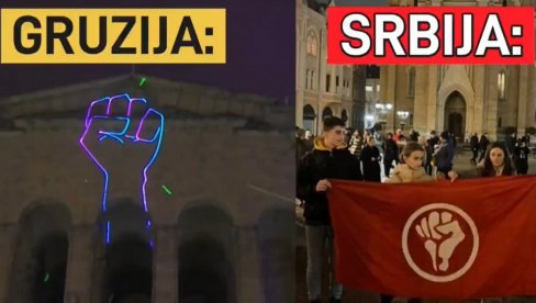 СЛУЧАЈНОСТ ИЛИ СУ ФИНАНСИЈЕРИ ИСТИ? У Грузији обојена револуција против проруског председника, у Србији са истим симболима против Вучића