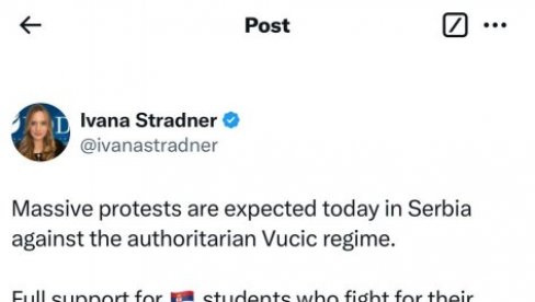 САРДНИЦА америчке Фондације за одбрану демократија и Куртијева лобисткиња и активискиња Ивана Страднер прижељкује нови пети октобар.