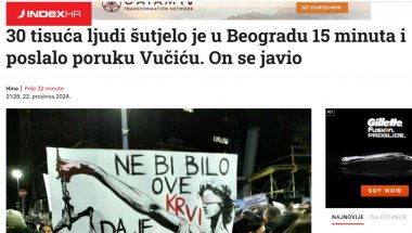 ХРВАТСКИ МЕДИЈИ О БРОЈУ ОКУПЉЕНИХ НА ПРОТЕСТУ ОПОЗИЦИЈЕ: "30 тисућа људи шутјело у Београду"