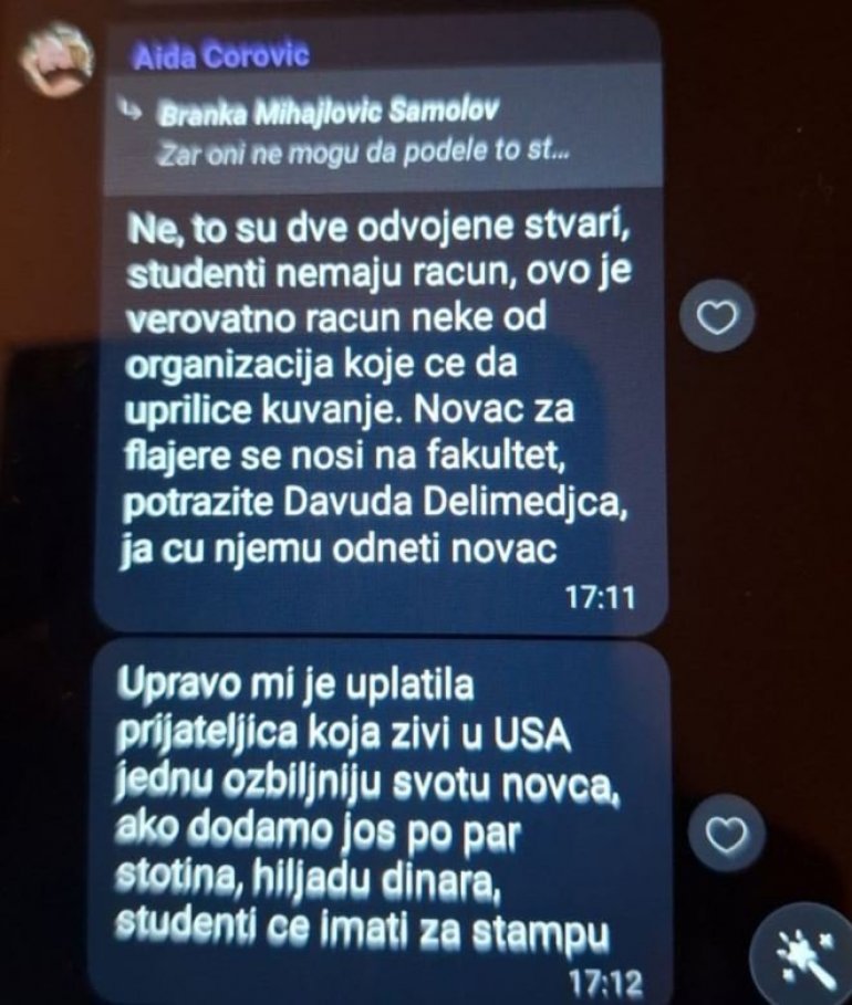 Наша редакција је дошла у посед преписке Аиде Ћоровић из које се јасно види модалитет прикупљања поменутог новца.