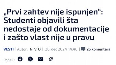 - "Први захтев није испуњен": Студенти објавили шта недостаје од документације и зашто власт није у праву - овако су опозициони медији писали и критиковали председника Вучића.