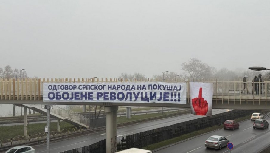 "ОДГОВОР СРПСКОГ НАРОДА НА ПОКУШАЈ ОБОЈЕНЕ РЕВОЛУЦИЈЕ": Транспаренти са јасном поруком грађана Србије (ФОТО)