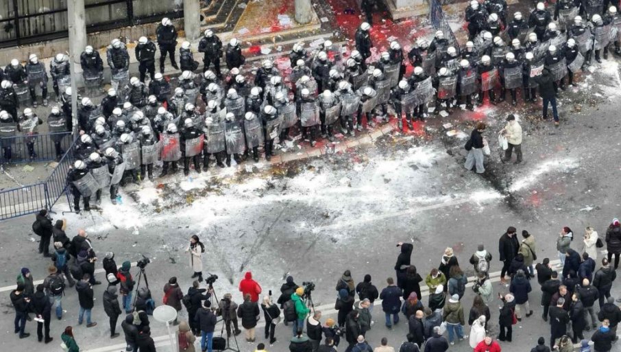 Опозициони екстремисти, дивљали су све време пред скупштином града и нападали српску полицију.