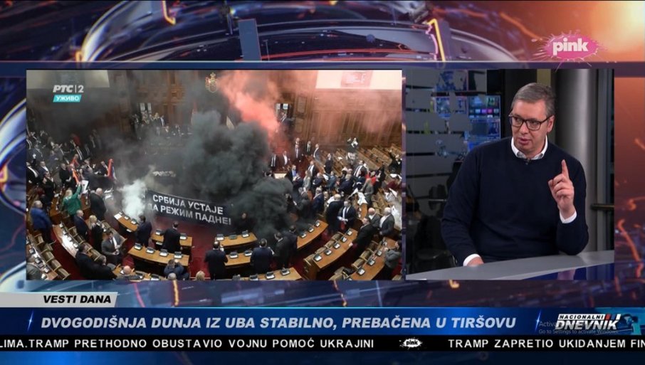 ПРЕДСЕДНИК Србије Алекаснар Вучић гост је Националног Дневника на ТВ Пинк.