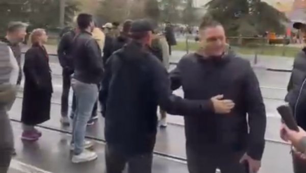 У САМОМ центру протеста, на Тргу Славија, затечени су Бранко Ружић и Владан Ђокић, ректор Универзитета у Београду, у шокантном загрљају!