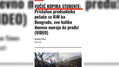 ОТКАКО је објављено да група од око 200 Срба са КиМ пешице долази на скуп у Београду 12. априла у знак подршке председнику Вучићу, опозициони медији не престају да шире лажи како је то пешачење присталица Александра Вучића 'плагијат акција студената блокадера'.