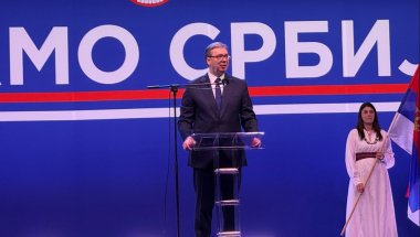 ПРЕДСЕДНИК Србије Александар Вучић обраћа се грађанима на свенародном скупу у Београду.