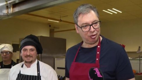 Вучић се укључио у програм из кухиње где спрема храну у кецељи.