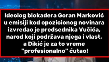 ИДЕОЛОГ блокадера Горан Марковић у емисији код опозиционог новинара извређао је председника Србије Александра Вучића, народ који подржава њега и власт, а Дикић је за то време "професионално" ћутао.
