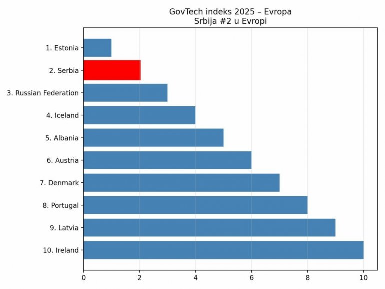 Изашао нови ГовТецх Матуритy Индеx - индекс технолошке зрелости јавне управе (ГовТецх Матуритy Индеx – ГТМИ) који се од 2020. године објављује у истоименом извештају Светске банке, уз пратећи сет података. У овогодишњем извештају Србија је додатно напредовала и позиционирана је на другом месту у Европи и 6. у свету. Испред Србије су Кореја, Саудијска Арабија, Естонија, Бразил и Аустралија! У претходном извештају 2022. године, Србија је према вредности ГТМИ индекса била позиционирана на 4. месту у Европи и 11. на свету.