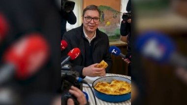 Све време пише мајци поруке у којима каже да је Вучић пробао и бабину гибаницу и да му се свидела, док жена одговара да је већ кренула с посла кући због посете председника.