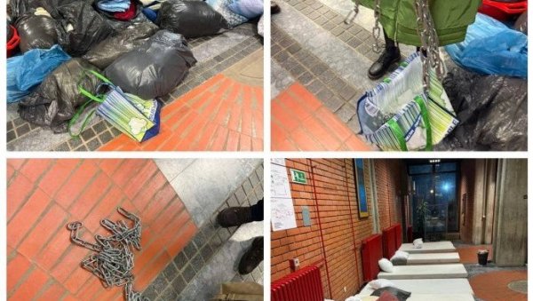 Доношење џакова смећа у академску установу додатно је изазвало огорчење, док су катанци јасно показали намеру да се факултет потпуно онеспособи за нормалан рад.
