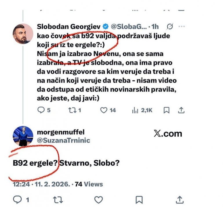 На то му је одговорила новинарка Сузана Трнинић која је упитала: "Б92 ергеле? Стварно, Слобо?"