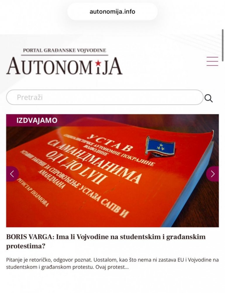 На овакав закључак упућује чланак објављен на Грухоњићевом порталу "Аутомонија" који потписује Борис Варга под насловом "Има ли Војводине на студентским и грађанским протестима?".