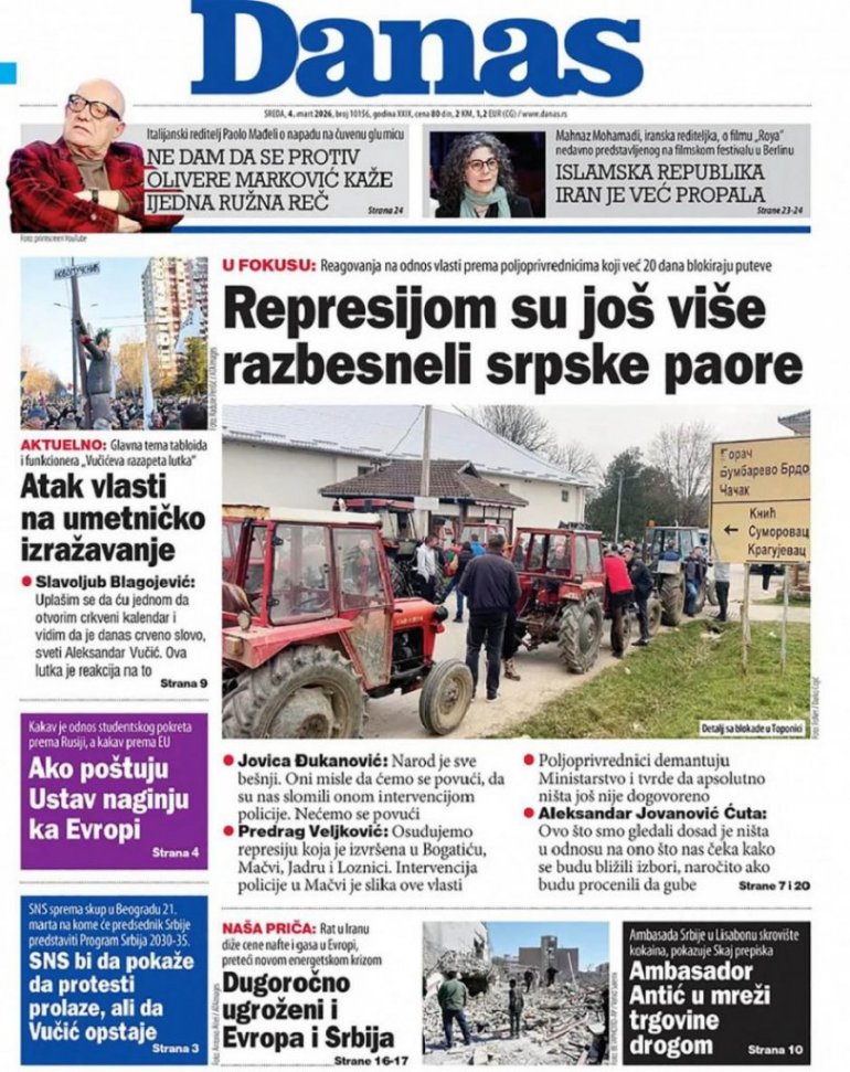 За њих је позивање на разапињање, убиство и спаљивање, “уметничко изражавање”, а свој став истакли су чак и на насловну страну данашњег издања блокадерског листа "Данас".
