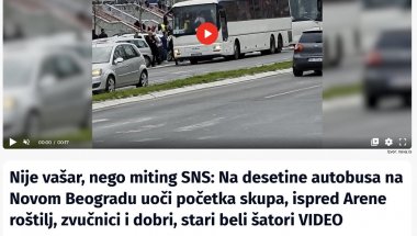- Није вашар, него митинг СНС, На десетине аутобуса на Новом Београду уочи почетка скупа, испред Арене роштиљ, звучници и добри, стари бели шатори - навели су апсолутно занемаривши чињеницу да су они пекли прасе на Аутокоманди и то им је била "свечана академија".