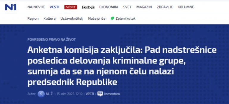Средином октобра 2025. године они су „закључили“, како пише главна тровачница, да је пад надстрешнице последица деловања криминалне групе на челу са председником Републике Александром Вучићем.