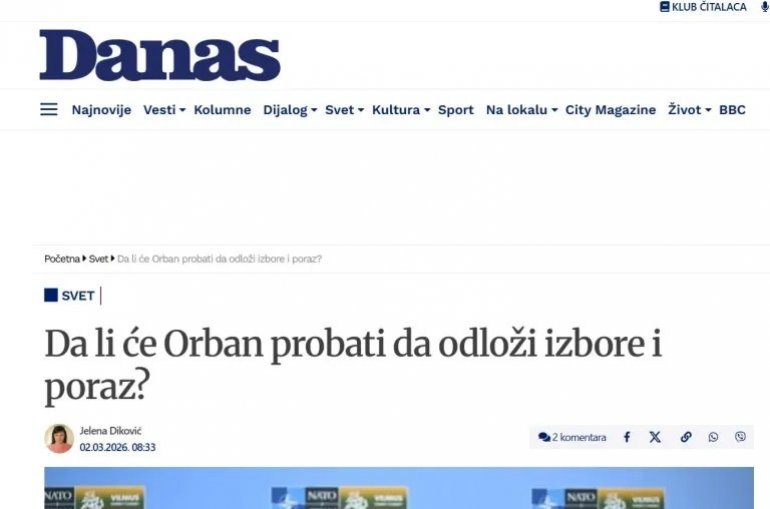 "Мађарски премијер Виктор Орбан сада је, кажу критичари, и војску укључио у кампању спремајући се за тобожњи „напад“ из Украјине. Постоје бојазни да би могао да откаже априлске изборе на којима му се смеши пораз", писао је лажовски Данас у марту ове године.