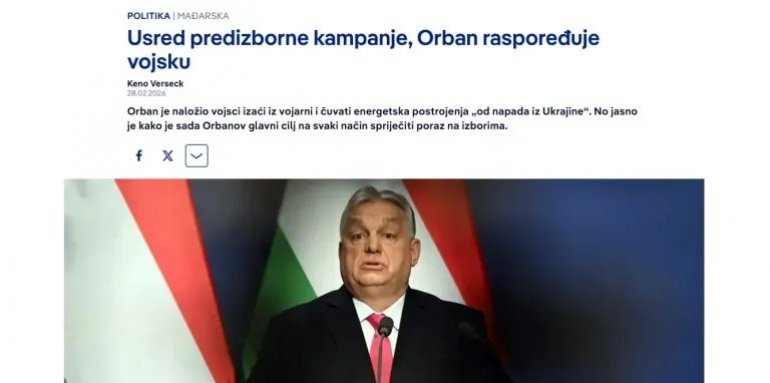 А како је писао антисрпски Дојче Веле, "Орбан је наложио војсци да изађе из касарни и чува енергетска постројења од напада из Украјине. Но јасно је како је сада Орбанов главни циљ на сваки начин спречити пораз на изборима."