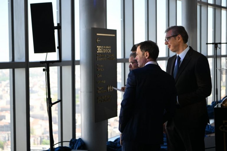ПРЕДСЕДНИК Александар Вучић присуствовао је церемонији отварања видиковца на 41. спрату Куле Београд.