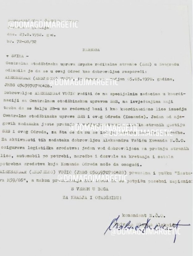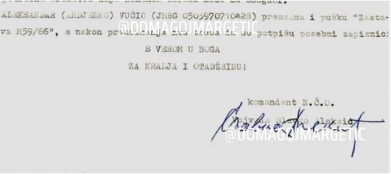 Славко Алексић је све наредбе, одлуке, захтеве упућиване према команди, као командант НЧО писао и потписивао искључиво ћирилицом.