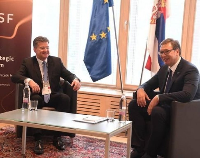 Председник Александар Вучић изјавио је да је на Бледу имао отворен и искрен састанак са специјалним изаслаником ЕУ за дијалог између Београда и Приштине Мирославом Лајчаком, којем је захвалан што говори о нормализацији односа.