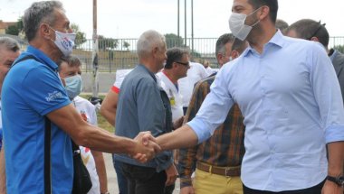 БОРАВЕЋИ на Малом сајму спорта у Краљеву, министар омладине и спорта Вања Удовичић, славни ватерполиста, био је у прилици да се рукује са локалном спортском легендом Владимиром Дашићем.