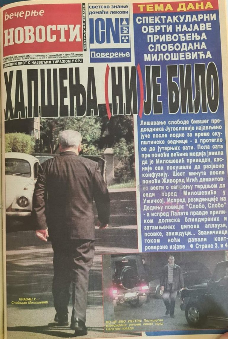 "НОВОСТИ" су 31. марта 2000. године писале о лажном хапшењу Слободана Милошевића.
