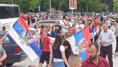 ВИЈОРЕ СЕ ТРОБОЈКЕ У ПОДГОРИЦИ: Скуп подршке Србима на Космету, испред Саборног храма (ФОТО)