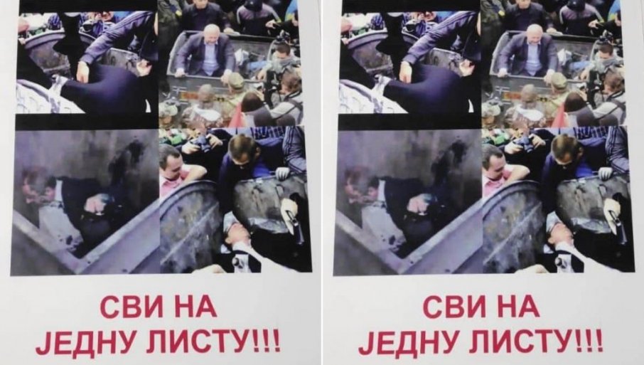 Na stranačkim prostorijama izlepljeni su plakati na kojima se nalaze fotografije političara iz Ukrajine koji su završili u kontejnerima!