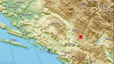 ZEMLjOTRES jačine 3,2 stepena Rihterove skale pogodio je danas područje 30 kilometara zapadno od Nikšića, preneo je Evropsko-mediteranski seizmološki centar.