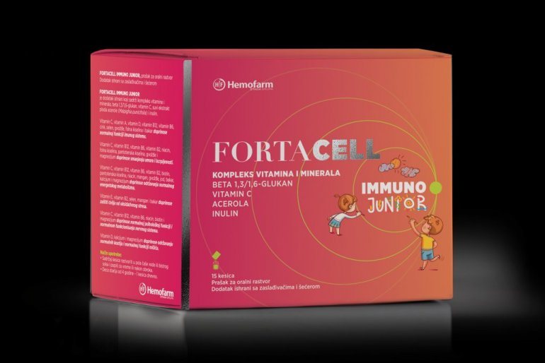 Za roditelje koji žele da ojačaju rutinu brige o zdravlju mališana, tu je Fortacell Immuno Junior – dodatak ishrani za decu stariju od 4 godine, sa kombinacijom vitamina i minerala i dodatnim sastojcima kao što su beta-glukan, acerola i inulin. Prijatnog ukusa pomorandže i jednostavne primene (jedna kesica dnevno), Fortacell Immuno Junior pomaže da se navike podrške imunitetu lakše održe i onda kada dani postanu najdinamičniji.