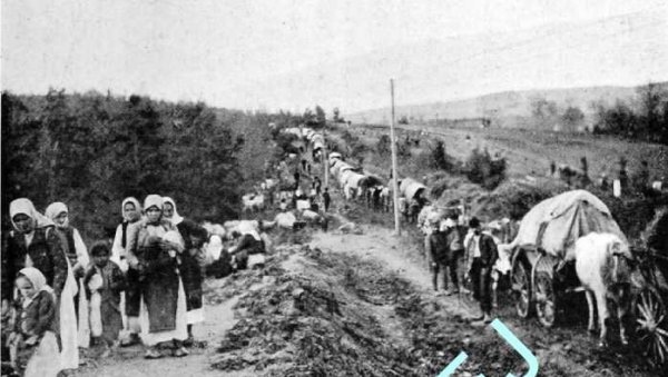 STRADANjE Kolona srpskih izbeglica povlači se zajedno sa vojskom , Foto iz knjige "Vojvoda Živojin Mišić"