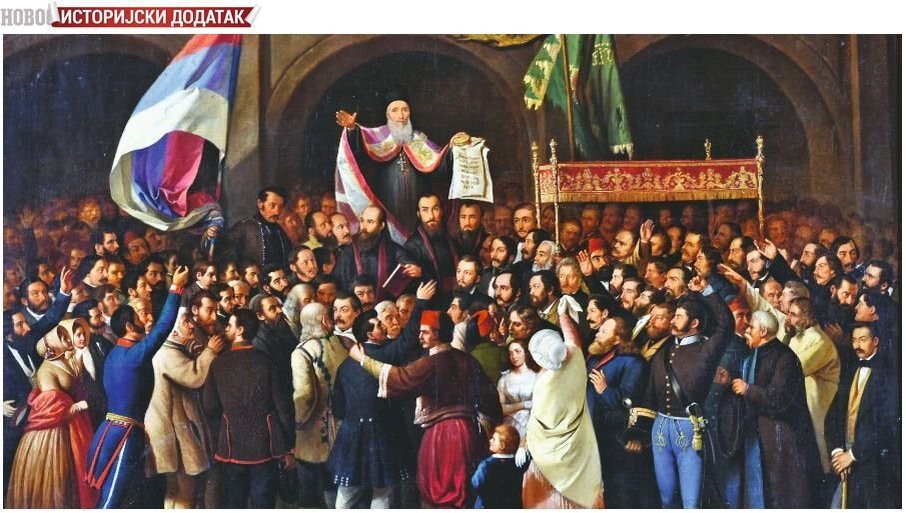 "ZATO otložite svaku strast, odbacite daleko ot sebe sve sebične interese, imajte pred očima samo slavu, čest i polzu narodnu, mislite da na vas gleda danas sav prosvešteni, sav slavenski svet, dopustite da rečem da vas gleda sveto pleme Nemanjića, Simeona, Save i Uroša, da vas prate oči Dušanove, Lazareve, Arsenija i Maksima, pomen`te se Miloš Obilića, složne braće devet Jugovića, al` i nevere Vuka Brankovića!!!