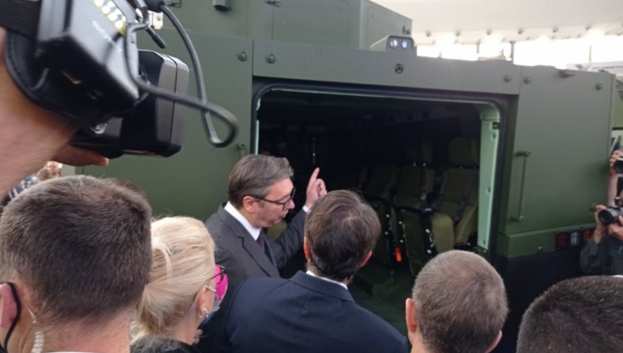 NA Sajmu naoružanja i vojne opreme "Partner 2021", koji je danas otvoren na Beogradskom sajmu, predstavljeno je borbeno vozilo "lazanski".