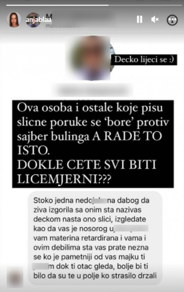 - Ova osoba i ostale koje pišu slične poruke se "bore" protiv sajber bulinga, a rade to isto. Dokle ćete svi biti licemerni? - napisala je Anja uz prepisku.