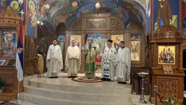 Sasluživali su protojerej-stavrofor Velibor Džomić, protojerej Dobrivoje Milunović, jereji Miloš Živković i Aleksandar Petrović i protođakon Dragan Radić, u prisustvu episkopa kanadskog Mitrofana, novogračaničko-srednjezapadnoameričkog Longina i buenosajreskog i južno-centralnoameričkog Kirila, saopšteno je iz SPC.