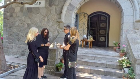Dok u tišini traje dostojanstven oproštaj najbližih i tiho opelo, na plato ispred mauzoleja pristižu odasvud Srbi i Grci. Ogromni venci belih hrizantema ukrašeni zastavama, i belim trakama sa porukama zahvalnosti i večnog sećanja na legendarnog čuvara seni junaka.