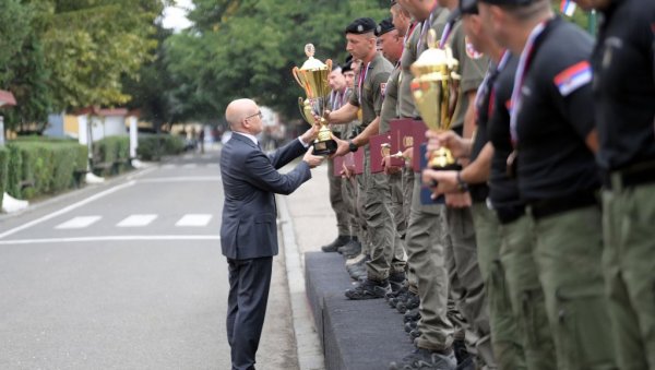 "ONO ŠTO NAS SPAJA JESTE NAŠA OTADŽBINA": Ministar Vučević uručio pehar pobednicima takmičenja jedinica Vojne policije (FOTO)