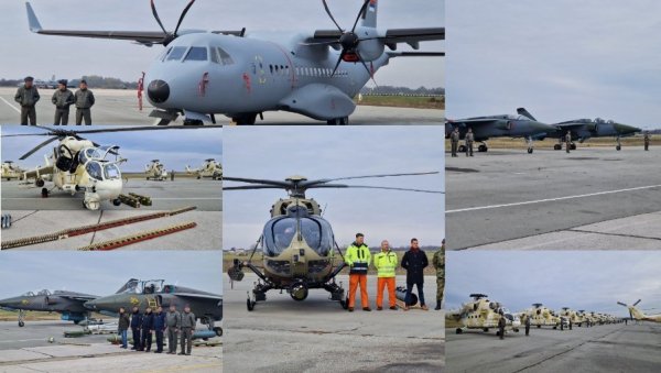 Osim ovih, prikazana su i dva nova "Erbasova" transportna aviona "C-295", novi helikopteri "H-145m" koji imaju novi sistem navigacije i opremljeni su laserski vođenim raketama, a svoje mesto na batajničkoj pisti pronašali su i modernizovani "orlovi" - jurišni bombarderi.