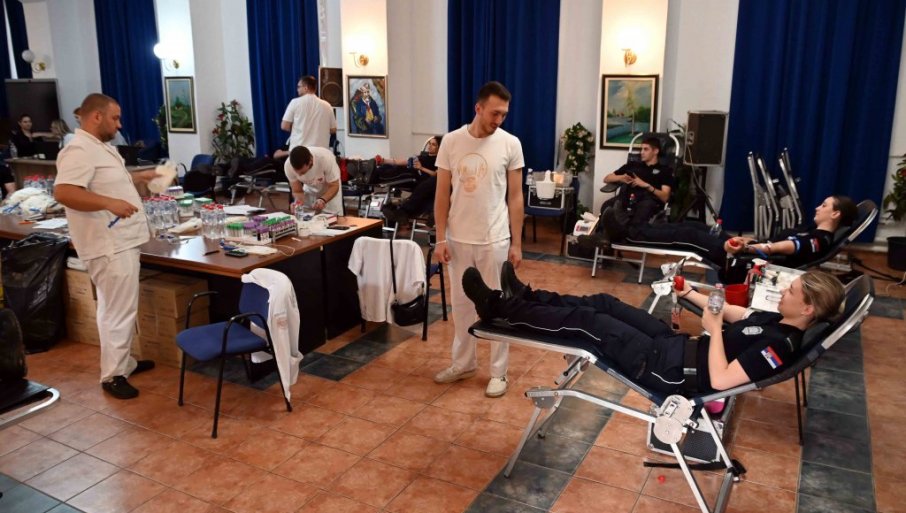 HUMANITARNA AKCIJA U SREMSKOJ KAMENICI: Gašić i budući policajci dobrovoljno dali krv (FOTO)