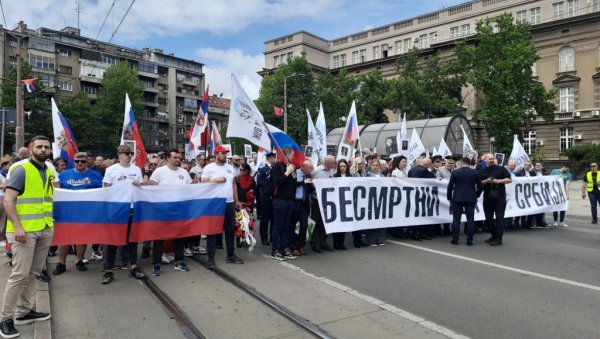 Okupljanje je održano kod Vukovog spomenika, a kolona učesnika "Besmrtnog puka" je u 10.30 časova krenula prema Groblju oslobodilaca Beograda.